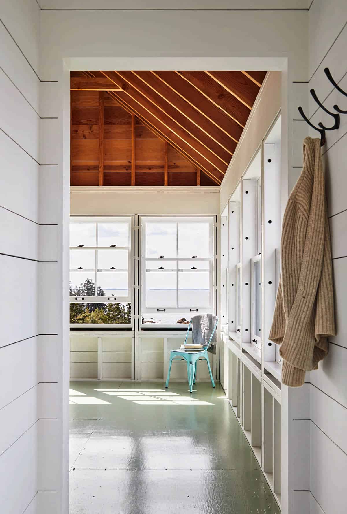 This camp-like cabin in Maine provides a timeless retreat for family gatherings. The relation of the house to the surrounding terrain shows just how much thought went into keeping the house’s nature-based design in harmony with the island’s surrounding beauty. Inside, the interiors strike a perfect balance between sophistication and playfulness, creating welcoming spaces that feel both refined and relaxed. What a wonderfully well thought out, well executed design for low maintenance.