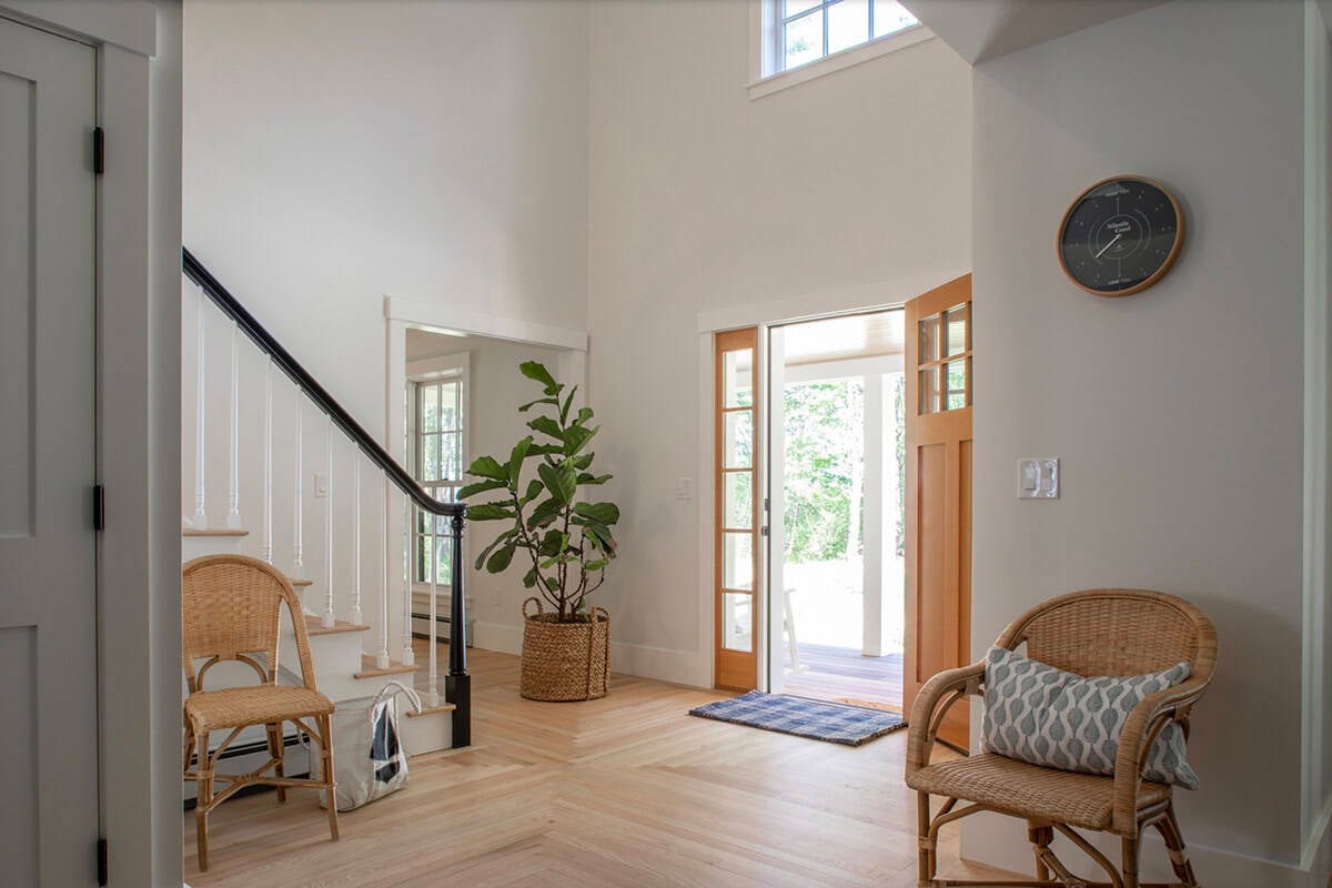 Haven Hill Builders, together with Amy Dutton Home, has reimagined this coastal colonial home on Gerrish Island in Kittery Point, Maine, originally built in the early 2000s. The home sits across the street from the Atlantic Ocean on beautifully landscaped grounds in a wooded setting. The project involved a comprehensive deep energy retrofit, A coastal colonial home gets a stunning remodel in Kittery Point, Maineuding high-performance windows, extensive air sealing, upgraded insulation, targeted additions, and a rooftop solar array.