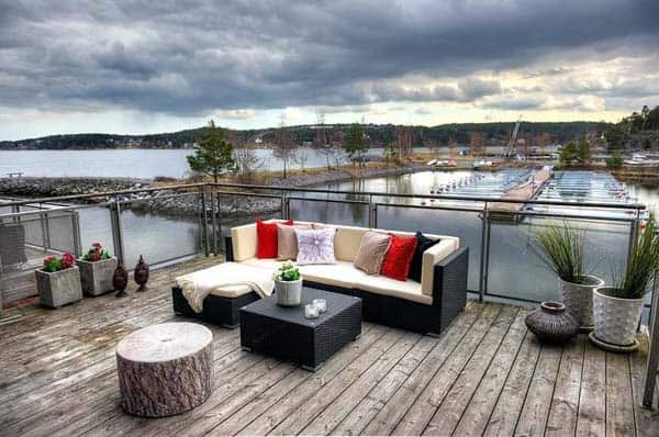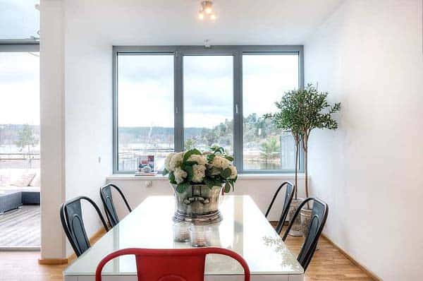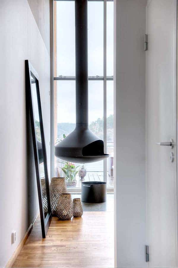 On the beautiful island of Lidingö, Sweden lays this fabulous property with uncompromising beauty designed by architect Thomas Sandell. Discovered on ESNY, this two storey home offers a splendid terrace and gorgeous views over the water. The three-bedroom home offers a very well though-out and executed design plan with open interior spaces and large glass partitions that maximizes light and sea views. The 1,550 square foot (144 square meters) residence is modern and environmentally conscious, with sophisticated technical solutions to reduce maintenance and operating costs.