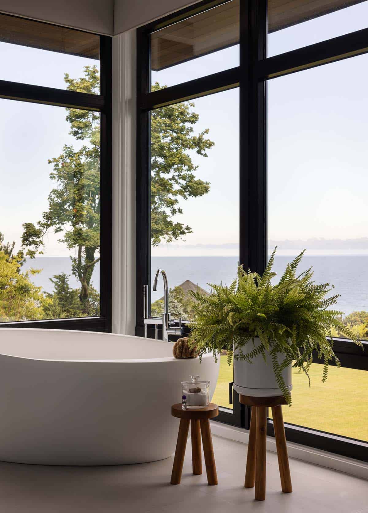 The interior renovation of this modern organic house by YDC Design emphasizes NeuroSensory Design™, which combines biophilic design, sensory awareness, and spatial psychology to elevate well-being at home, nestled on the wooded coastline of Long Island’s North Shore.