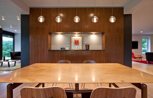 This beautiful contemporary residence in Iowa City was built in 1941 and subsequently expanded several times over the decades, was a complex mass housing a maze of rooms with no overall sense of organization. The home had one compelling feature, a large site in an established neighborhood surrounded by mature trees. The desire to liberate and organize the interior spaces and connect them to this landscape was a central theme which guided the homes renovation.