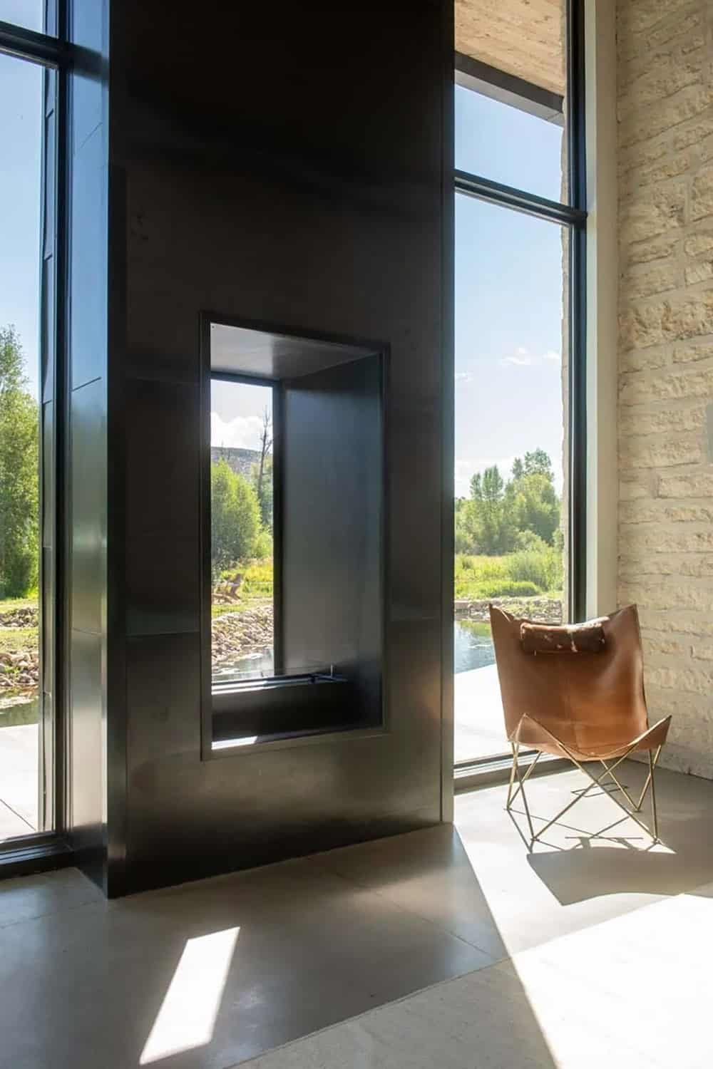 This riverfront ranch, designed by Brighton Architectural Group and built by Landmarks West, provides a stunning retreat for outdoor enthusiasts, situated on a 21-acre property just outside Park City, Utah. This dream pad has it all: a yoga studio in a silo, heated horse stables, and 450 feet of private river waters for fly fishing.