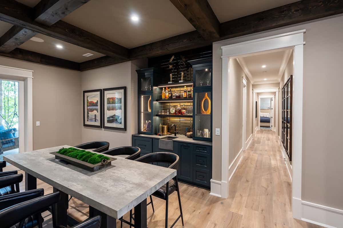 Every detail was crafted to embrace the tranquil lake lifestyle—from earthy, aquatic hues that echo the natural landscape to the organic artistry of custom light fixtures. Every inch of this home exudes accessible sophistication. Highlights include a gym, a recreation room with a bar, an inviting pool, a dedicated office, and a three-car garage. Continue below to see more of this amazing home tour….